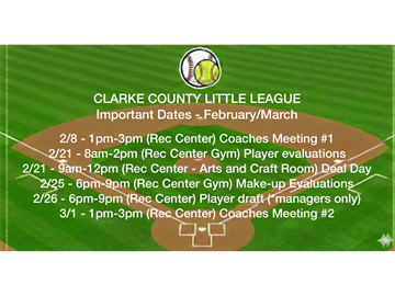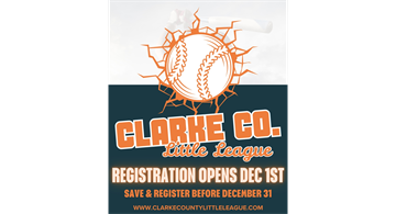 Clarke County Little League 20% OFF Throughout the Store!Friday, February 28th - Monday, March 3rdWinchester Dick’s Sporting Goods LocationSave the date!