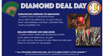 Before you clear out the garage, hold onto that gear! Join us for Diamond Deal Day to support our Little League. It’s the perfect way to give your pre-loved equipment a second life and score some great finds for the new season. Ma...